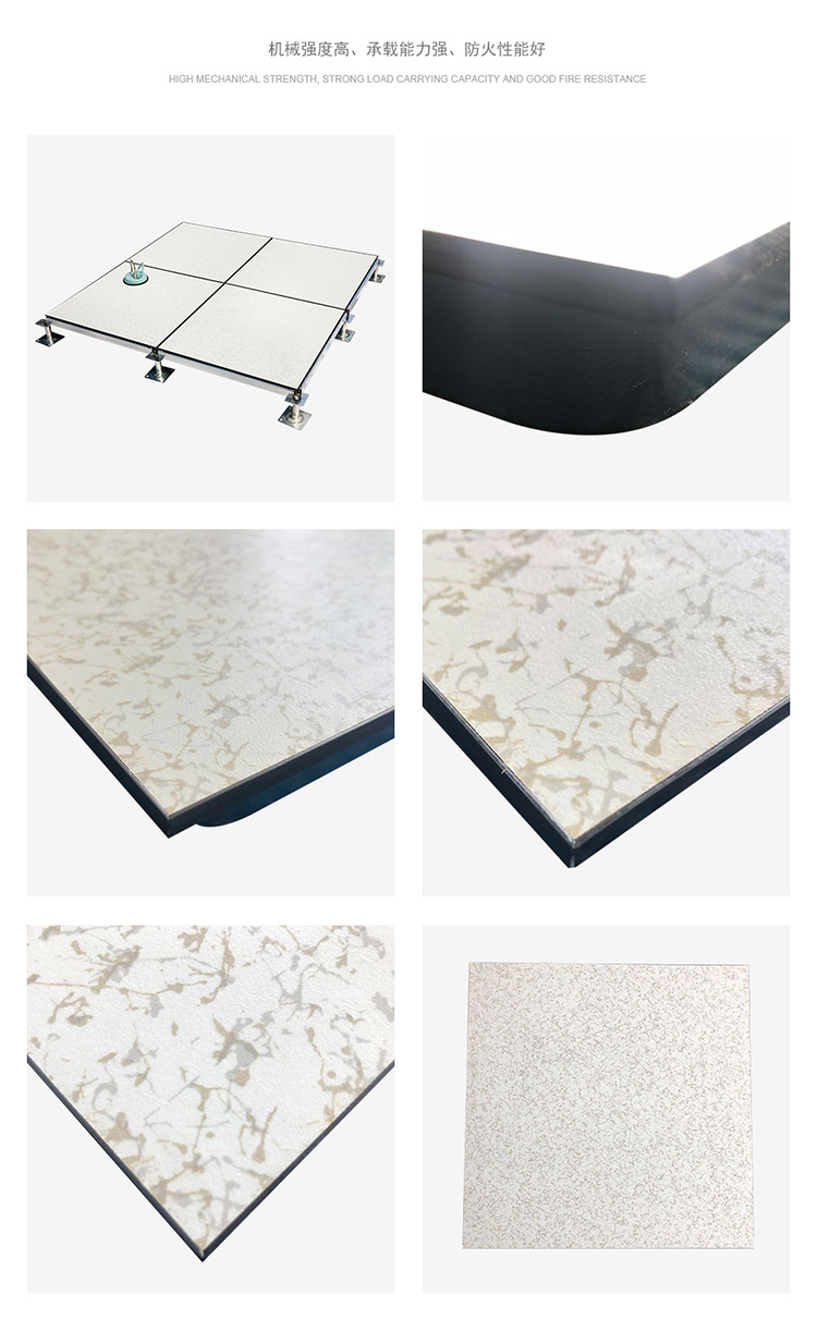 全鋼防靜電地板為全鋼組件,分有邊、無邊、微邊(三種邊處理方式)。底面采用SPCC深沖冷軋板拉伸成型鋼板厚度(0.4~1.5mm),球窩狀結(jié)構(gòu),增加地板的機(jī)械荷載強(qiáng)度。面板采用硬質(zhì)SPCC鋼板(0.5~2.0mm),上下經(jīng)過點(diǎn)焊焊接成型,切邊沖孔后,經(jīng)防銹處理,環(huán)氧樹脂粉末靜電噴涂后,中間填充發(fā)泡水泥(可以根據(jù)客戶需求發(fā)泡不同重量),再經(jīng)過日曬養(yǎng)護(hù)后形成穩(wěn)定的承載結(jié)構(gòu)。地板上表層粘貼防火板(HPL)/復(fù)合PVC/ 通體PVC/陶瓷地磚等不同材質(zhì)的裝飾表層,達(dá)到產(chǎn)品花色的多樣性、可以根據(jù)客戶需求個(gè)性化定制產(chǎn)品。搭配聯(lián)網(wǎng)支架、支架、螺釘組裝后,定位聯(lián)接更加準(zhǔn)確、精度可靠。