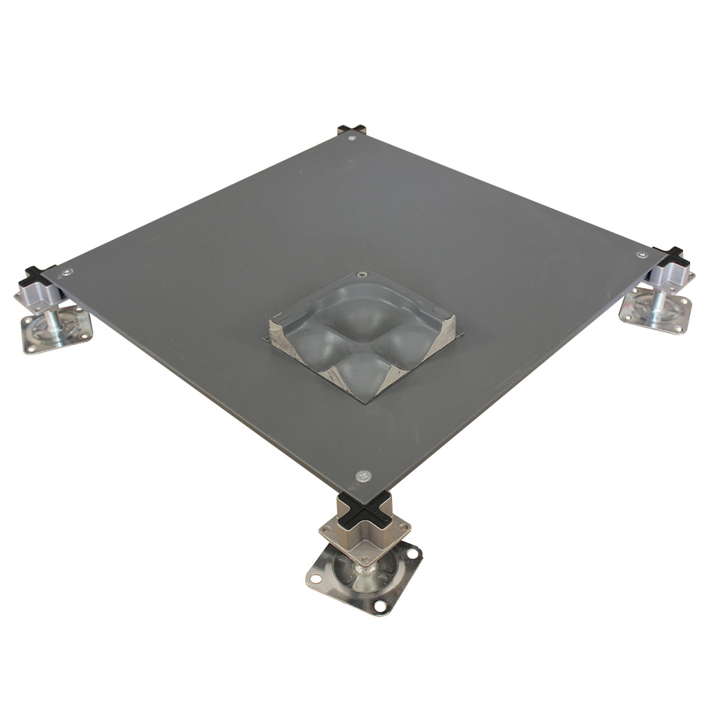 OA500網(wǎng)絡(luò)架空地板采用鋼板經(jīng)拉伸成型、點(diǎn)焊、外表經(jīng)防銹處理后進(jìn)行靜電粉末噴涂處理,內(nèi)腔填充發(fā)泡水泥,四角帶有角鎖孔。支架為冷軋帶鋼鋼板及鑄鋁合金鋁頭組成,可調(diào)節(jié)升降高度。由于智能化樓宇配線復(fù)雜,功能齊全,故出線口較多。