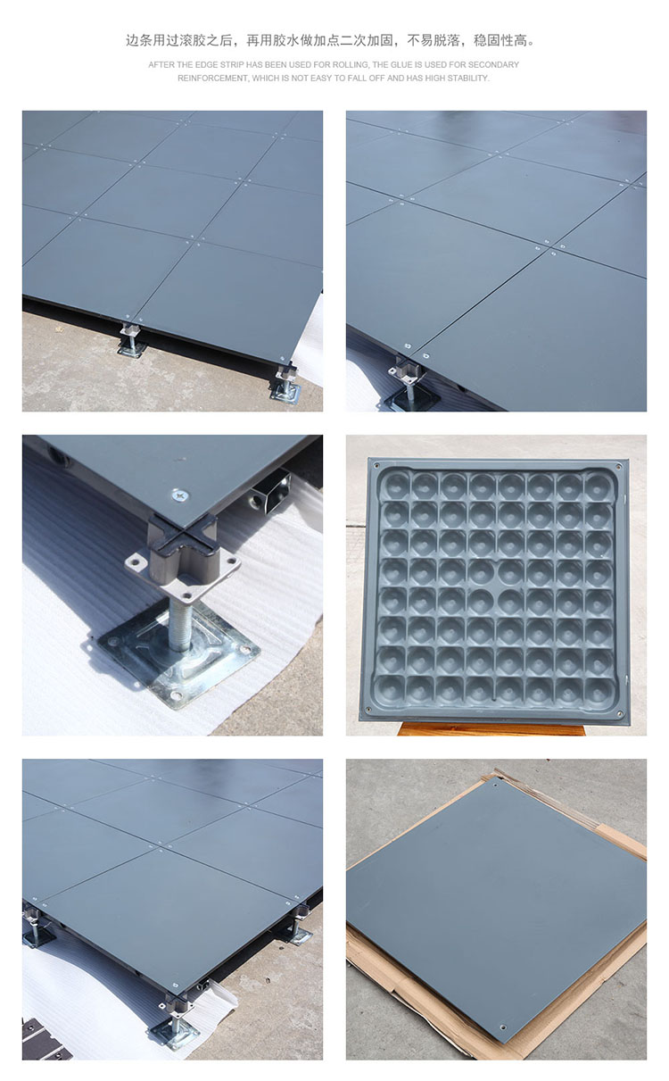 該地板可以選配帶出線(xiàn)口的配置,可根據(jù)要求任意添加線(xiàn)槽布線(xiàn)更具靈活性。此地板可以將強(qiáng)、弱電分開(kāi)隔離,同時(shí)也便于檢修。安裝采用無(wú)梁角鎖,具有牢靠、穩(wěn)定、調(diào)平、簡(jiǎn)便之特點(diǎn)。